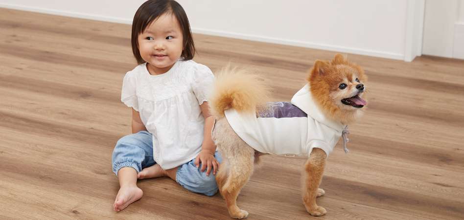 まず最初の商品は、小型犬の歩きやすさ、足腰に配慮、猫の吐き戻しや汚れに特化したフローリングです!