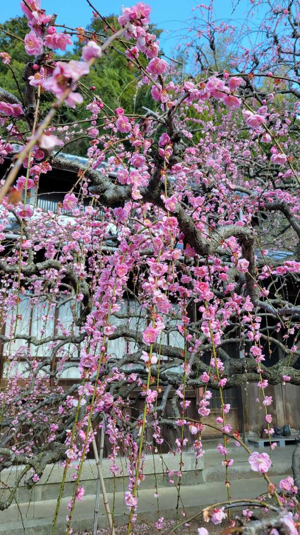 こんにちは😊今日もご訪問して頂きありがとうございます事務員をしているきょうこです。今日は3月8日で、天気はいいけれど風が冷たくて寒いです。3月3日の日曜日に淡路島の個人宅でありながら、樹齢約70年のしだれ梅があるという事で、見に行ってきました😊高さが約7m・幅が約10mのしだれ梅は個人宅のお庭ですが、花が咲く時期に開放されて見学できるのです。花の色が濃くて立派で見ごたえがあるため、この1本を見るために訪れる人が多いみたいです。毎年2月中旬頃~3月初めが見どころみたいですね😊