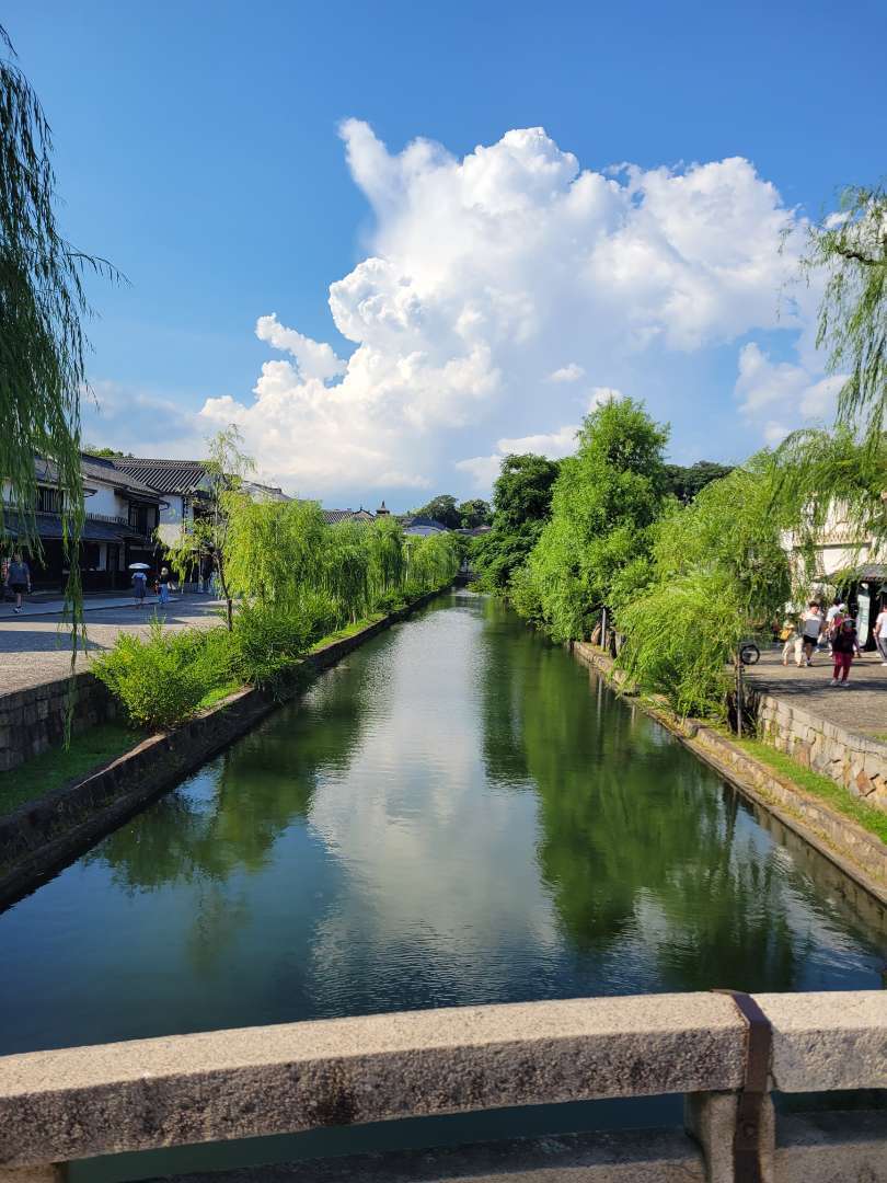 でもこの暑い中、岡山に行ってきました😊特に何が目的だったわけでもなくて💦倉敷美観地区に行きましたよ。歴史とアートが薫る美しい白壁の街並みなんです。白壁の蔵屋敷、なまこ壁、柳並木など、趣味ある景観が楽しめました。倉敷川沿いのレトロモダンな風景が、世界中の人を魅了し続けています。