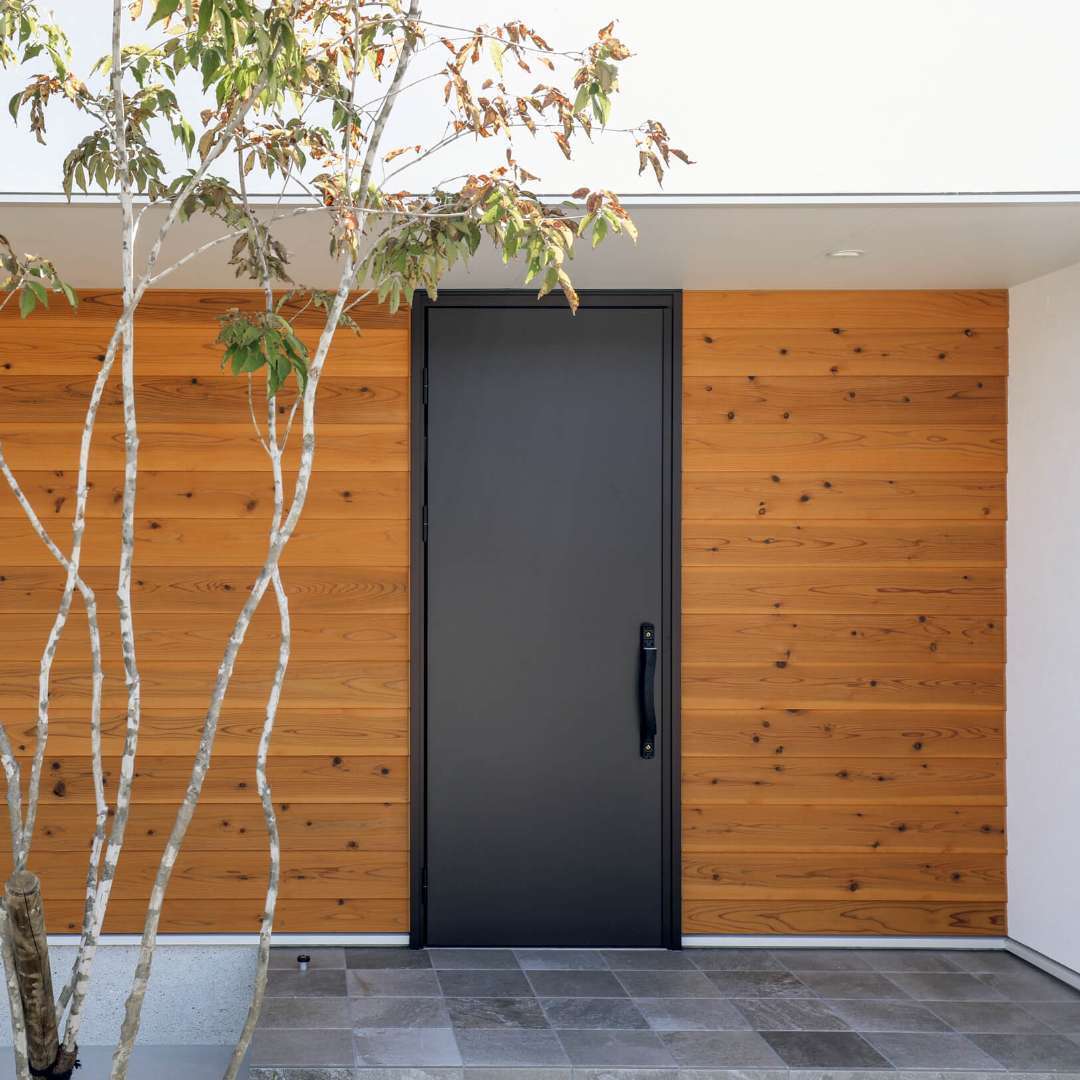濃いブラウンやブラックの玄関扉は、重厚感や落ち着きを演出。姫路市の伝統的な住宅や高級感を出したい家にぴったりです。ダークカラーは汚れに強くメンテナンスもしやすい反面、暑い季節は熱を吸収しやすいので素材選びも考慮を。